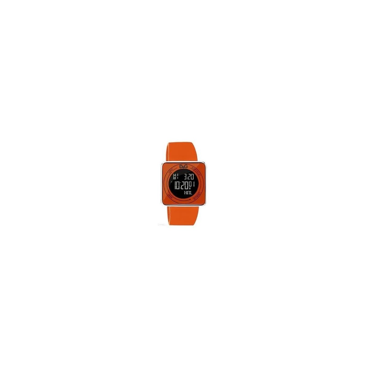 Orologio unisex D&G con cassa in acciaio, quadrante digitale con logo inciso, movimento al quarzo, vetro minerale e bracciale in silicone arancione