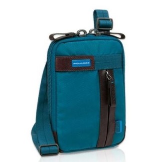 Borsello piccolo in tessuto tecnico color ottanio e riporti in pelle della linea viaggio Nimble
