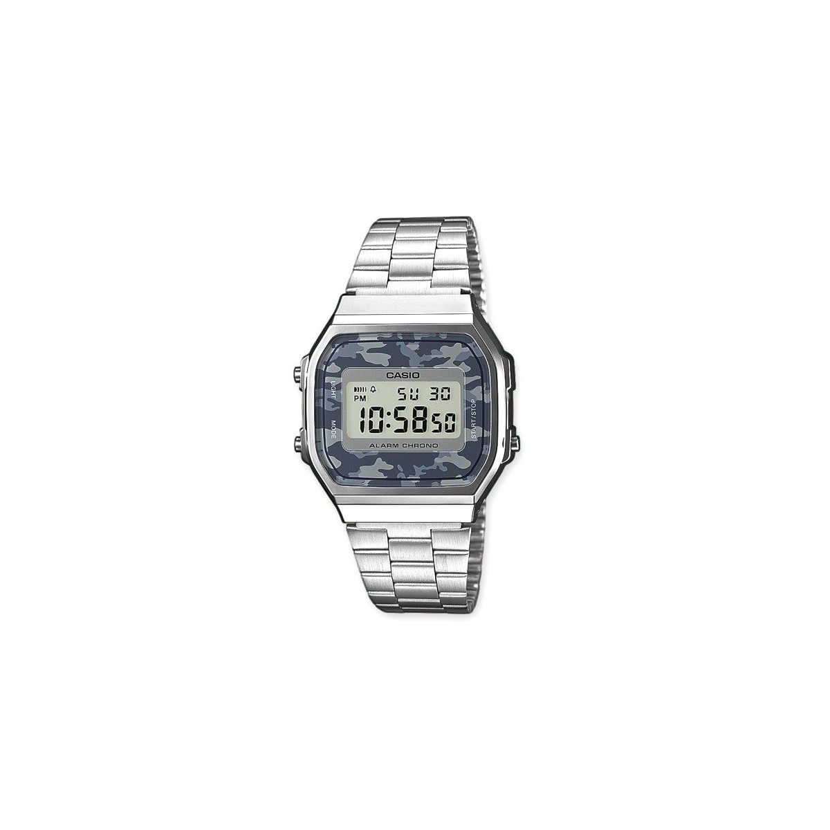 Orologio digitale modello anni '70 in acciaio con quadrante mimetico grigio