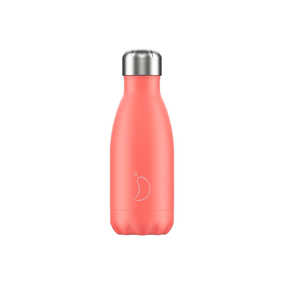Bottiglia termica riutilizzabile della collezione Pastel di colore rosa corallo e tappo avvitabile argentato, capienza 260ml, finitura opaca.