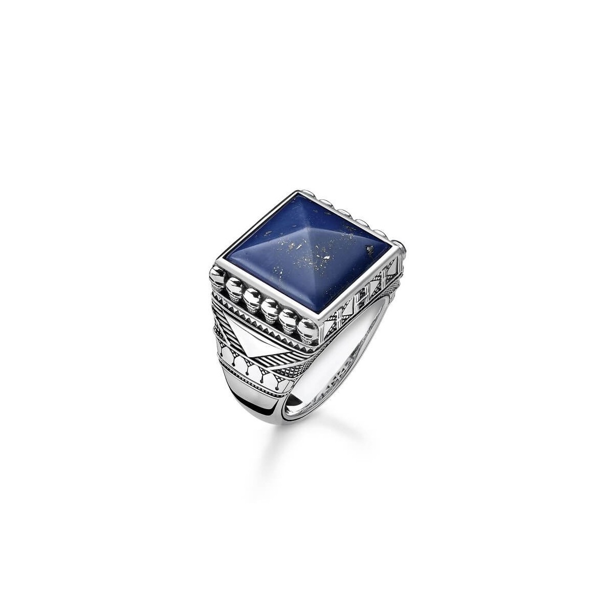 Anello Thomas Sabo Rebel at Heart in argento decoro teschi con Lapislazzuli a piramide