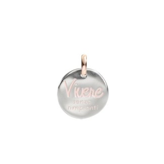 Pendente Moneta piccola Vivere senza rimpianti in argento con anellino in oro rosa novità 2018