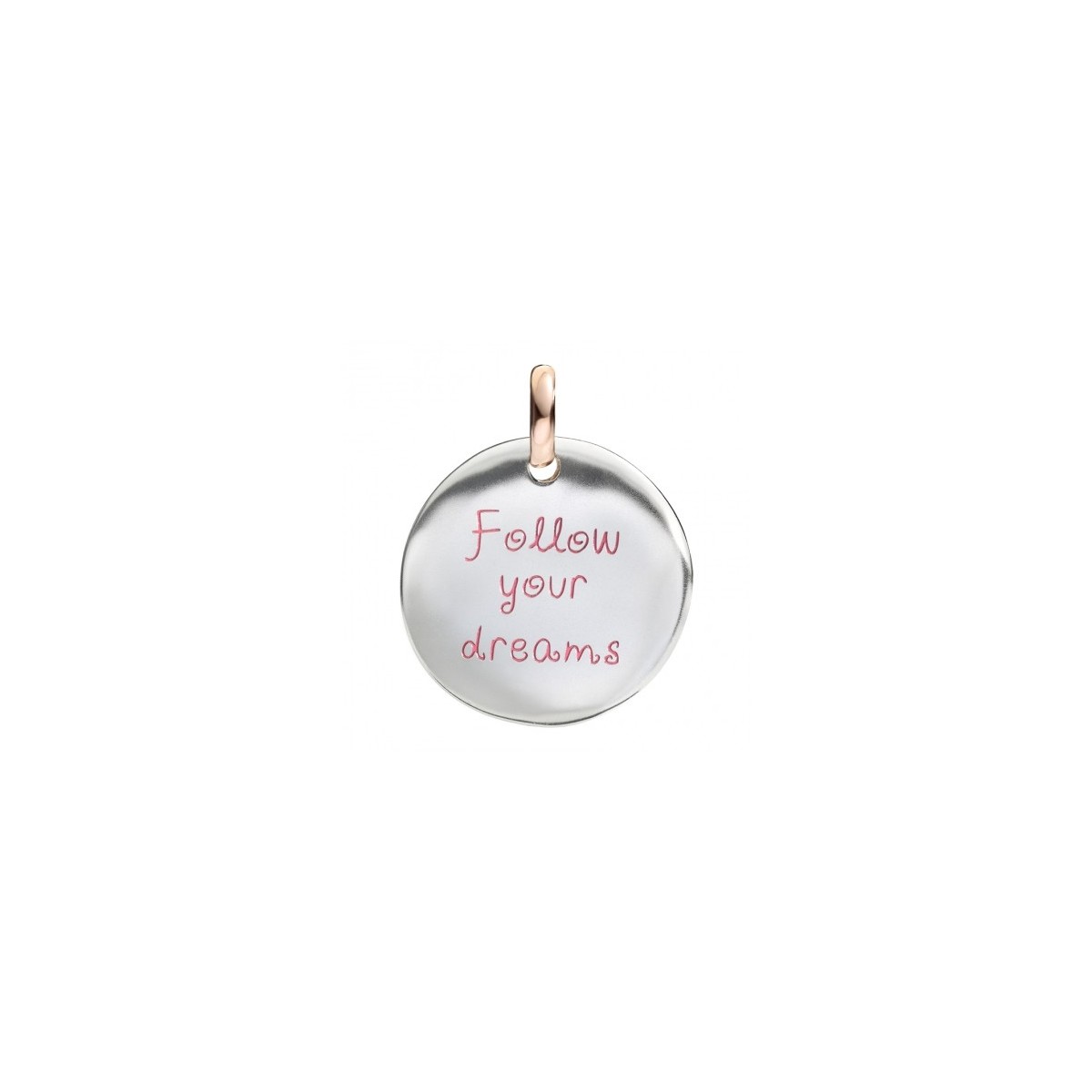 Componente moneta grande Segui i tuoi Sogni in argento 925 con anellino in oro rosa 9 k per bracciali e collane Civita Queriot in argento o cotone cerato - F13A03M2822