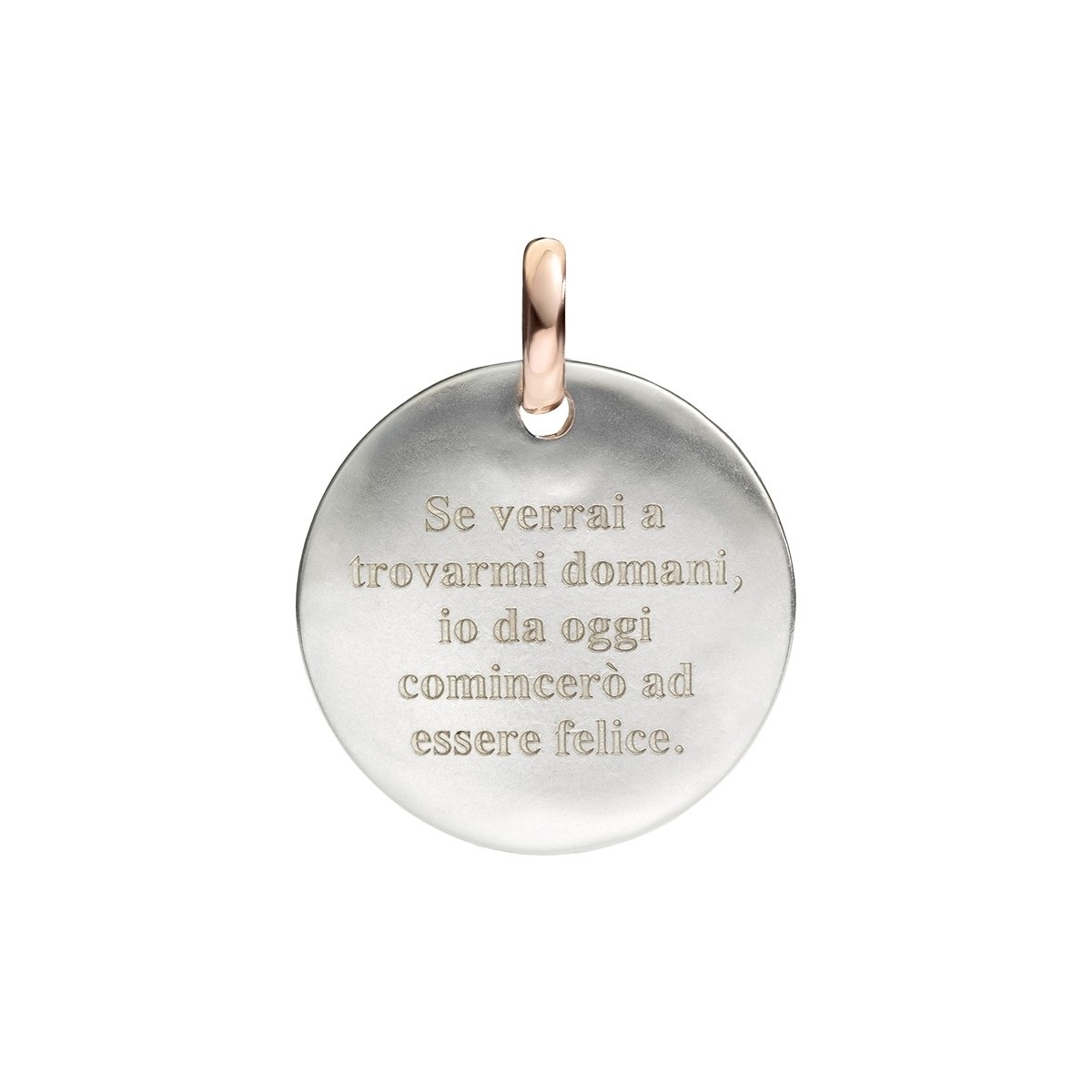 Componente moneta grande Se verrai a trovarmi domani, io da oggi comincio ad essere felice, in argento 925 con anellino in oro rosa 9k per bracciali e collane Civita Queriot in argento o cotone cerato - F13A03M0037