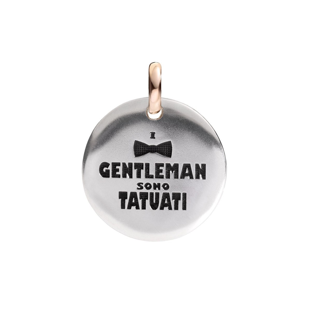 Componente moneta grande I gentleman in argento 925 con anellino in oro rosa 9 k per bracciali e collane Civita Queriot in argento o cotone cerato - F14A03M9050