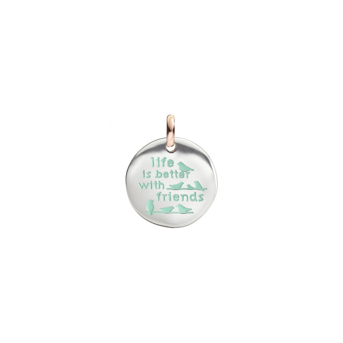 Componente moneta grande Life is better in argento 925 con anellino in oro rosa 9 k per bracciali o collane Civita Queriot in argento o cotone cerato - F13A03M6026