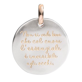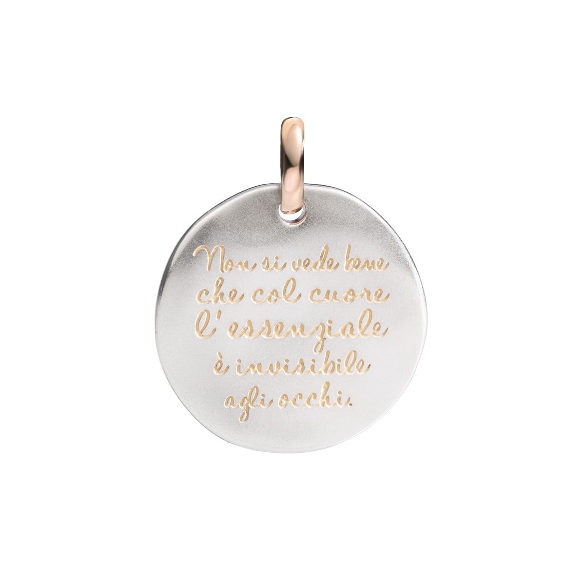Componente moneta grande Piccolo Principe - Non si vede bene che col cuore l'essenziale è invisibile agli occhi - in argento 925 con anellino in oro 9k per bracciali e collane Civita Queriot in argento o cotone cerato - F15A03M1256