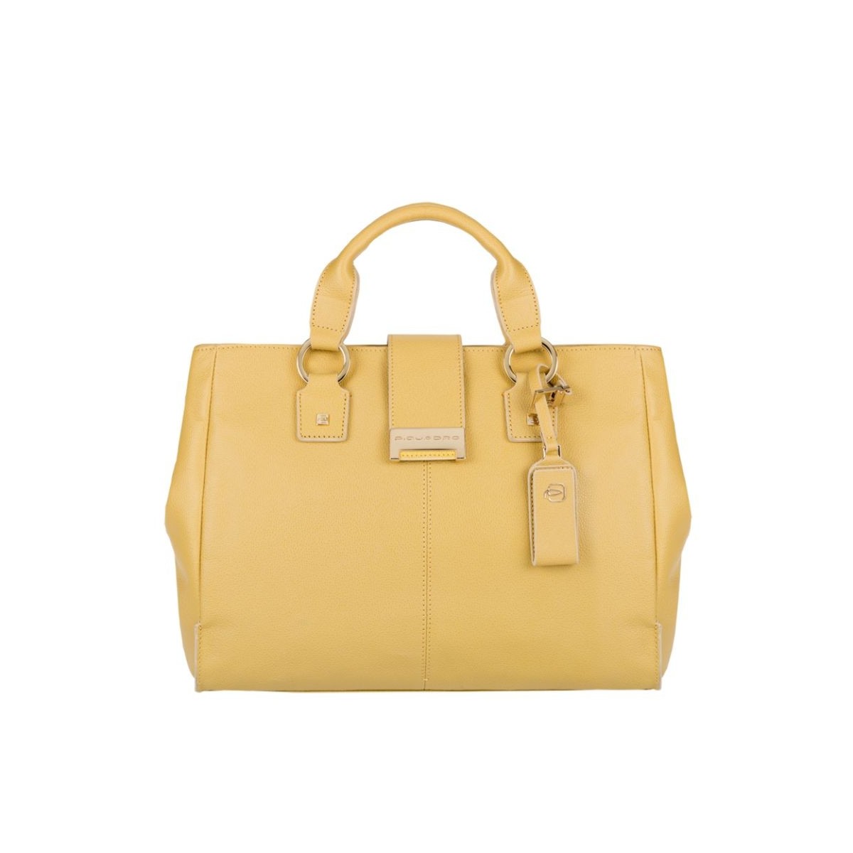 Cartellina borsa donna Piquadro due manici in pelle colore giallo.