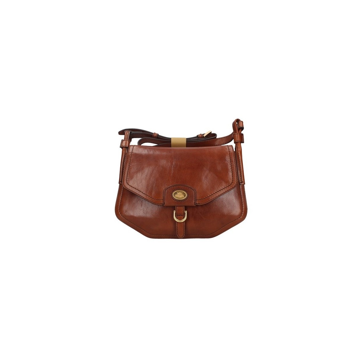 Borsa a tracolla da donna The Bridge, della collezione Ada, realizzato in vera pelle color cuoio con tracolla regolabile e chiusura a bottone. Organizzazione interna fissa con porta occhiali, porta cellulare e porta oggetti.