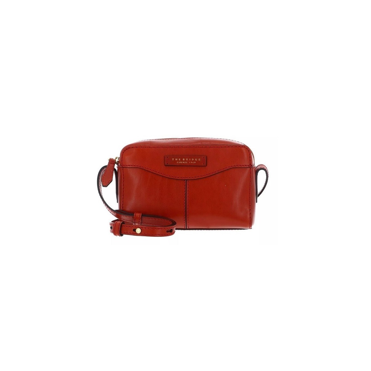 Camera case a tracolla firmata The Bridge in vera pelle bovina di alta qualità di un bellissimo ed irriverente arancio bruciato che rimanda alle calde e soleggiate giornate estive ma che si adatta bene anche ai mesi più freddi.