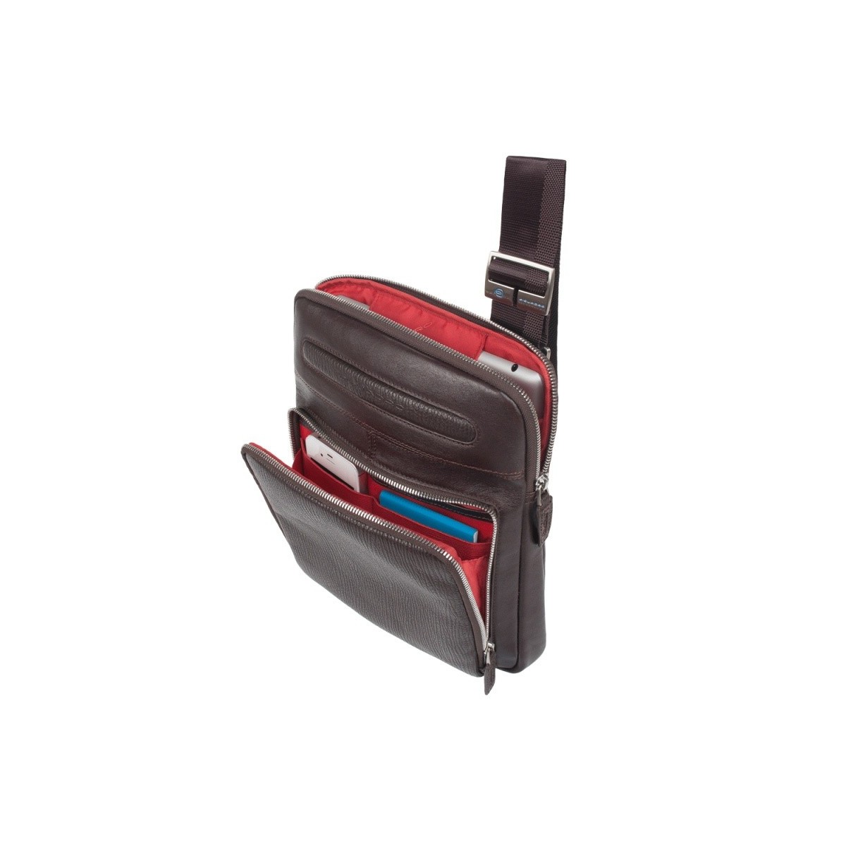 Piquadro Borsello organizzato piatto color testa di moro con tracolla