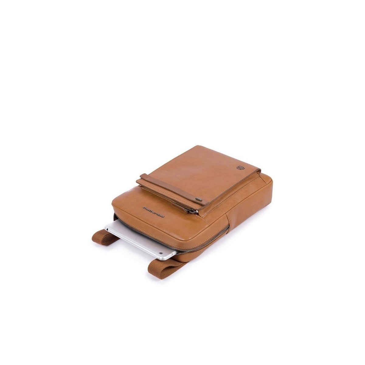 Borsello da uomo della linea Cube caratterizzata dalle comode tasche anteriori chiuse con zip in morbidissima pelle di vitello pieno fiore liscia o leggermente ingranata, e dai giochi di sovrapposizione di dettagli in pelle e finiture canna di fucile.
