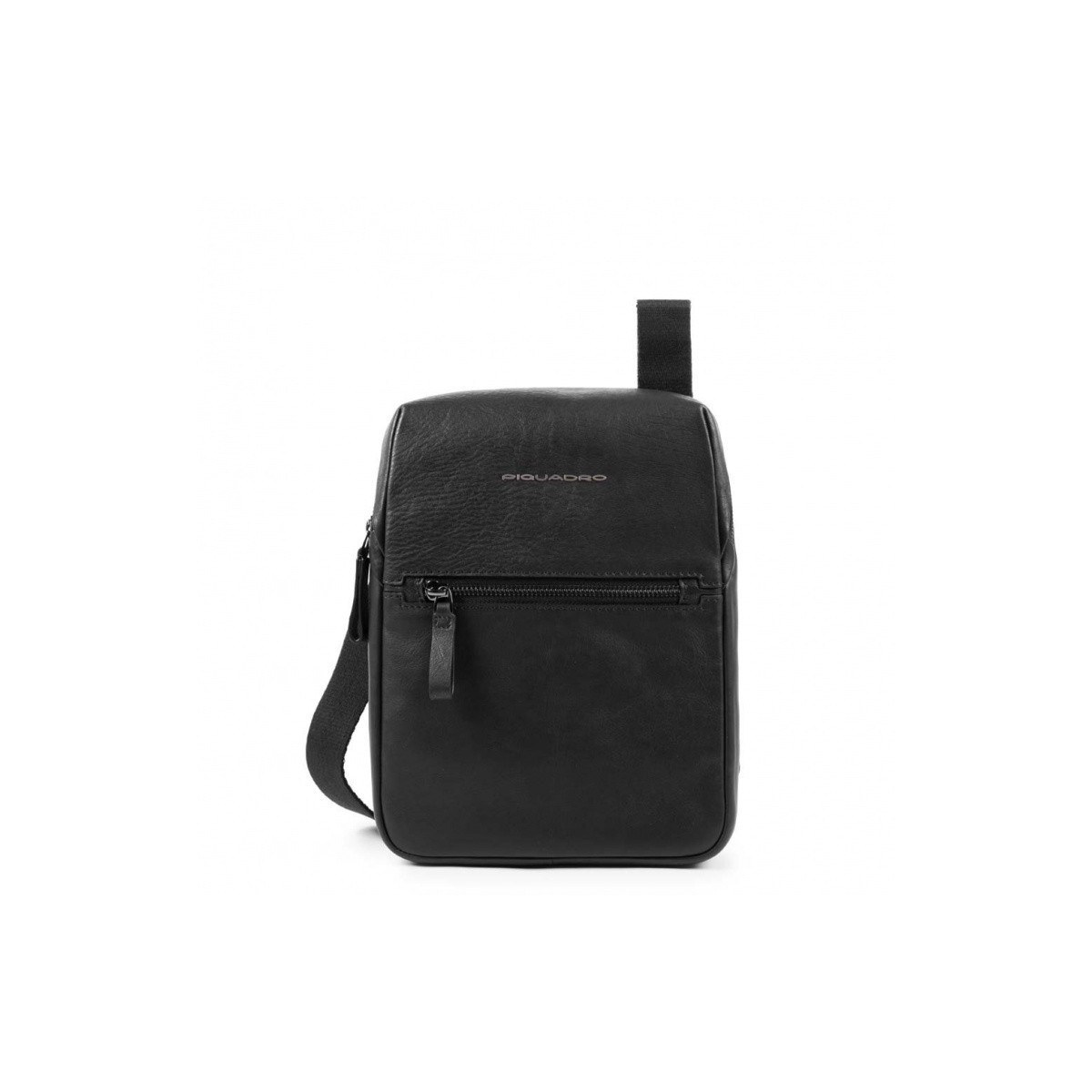 Borsello piccolo uomo della linea Line in pelle di vitello pieno fiore nuvolata abbinata ad un pellame dall'effetto bicolore irregolare. Gli accessori dalla finitura canna di fucile rendono ogni accessorio di questa linea grintoso e dinamico.