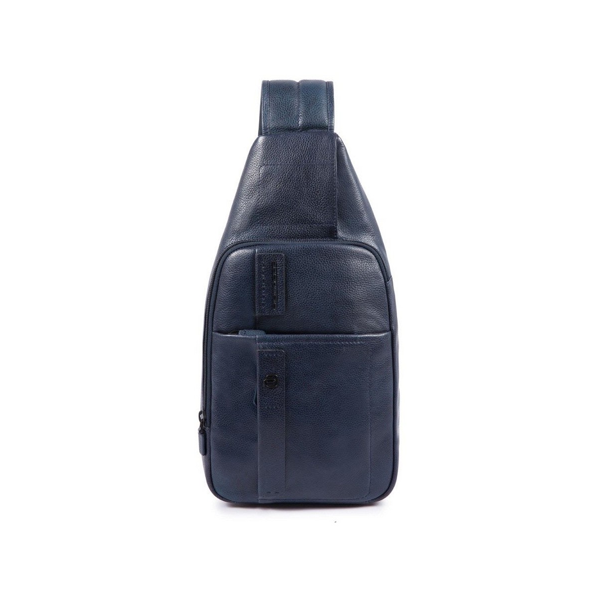 Monospalla uomo in pelle di colore blu con porta I Pad della collezione P15Plus. La collezione P15S è realizzata interamente in pregiata pelle di vitello vegetalizzata, dalla mano morbida e pastosa. Gli accessori metallici dalla finitura in palladio nero opaco rendono questa linea informale e leggerissima.