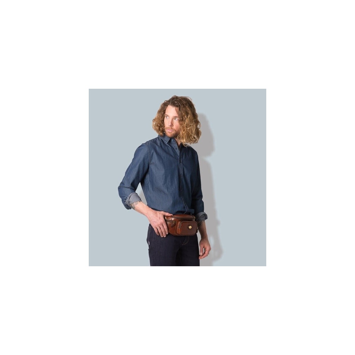 Marsupio in vera pelle con chiusura a zip e tasche esterne laterali e frontali, tasca porta oggetti, tasca porta occhiali, tasca porta cellulare, tracolla regolabile. Pratico ed elegante, perfetto per una passeggiata.