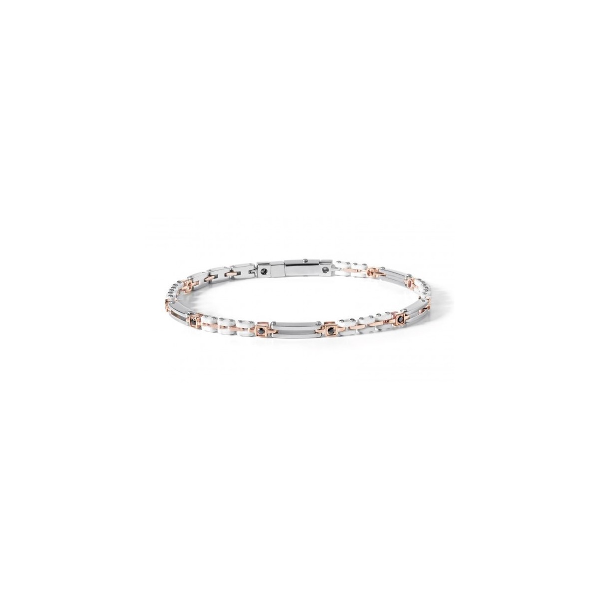 Bracciale "Extra" in acciaio, PVD rosa e ceramica bianca con Spinelli neri