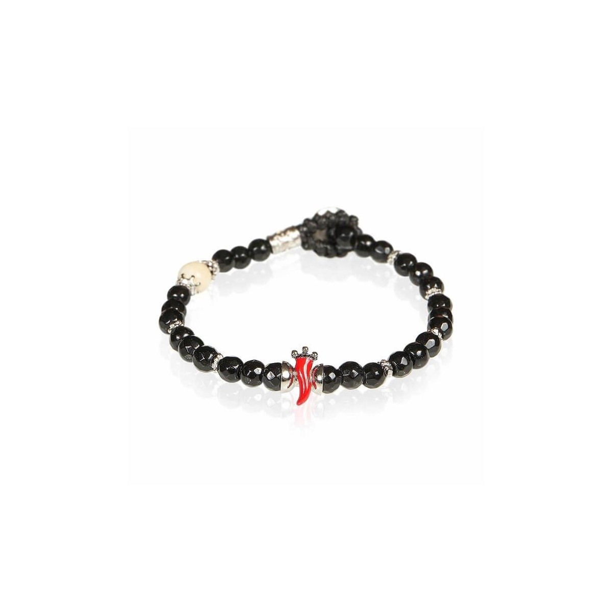 Bracciale maschile Horn Collection 16 Gerba con onice nero e cornetto rosso - HORN16
