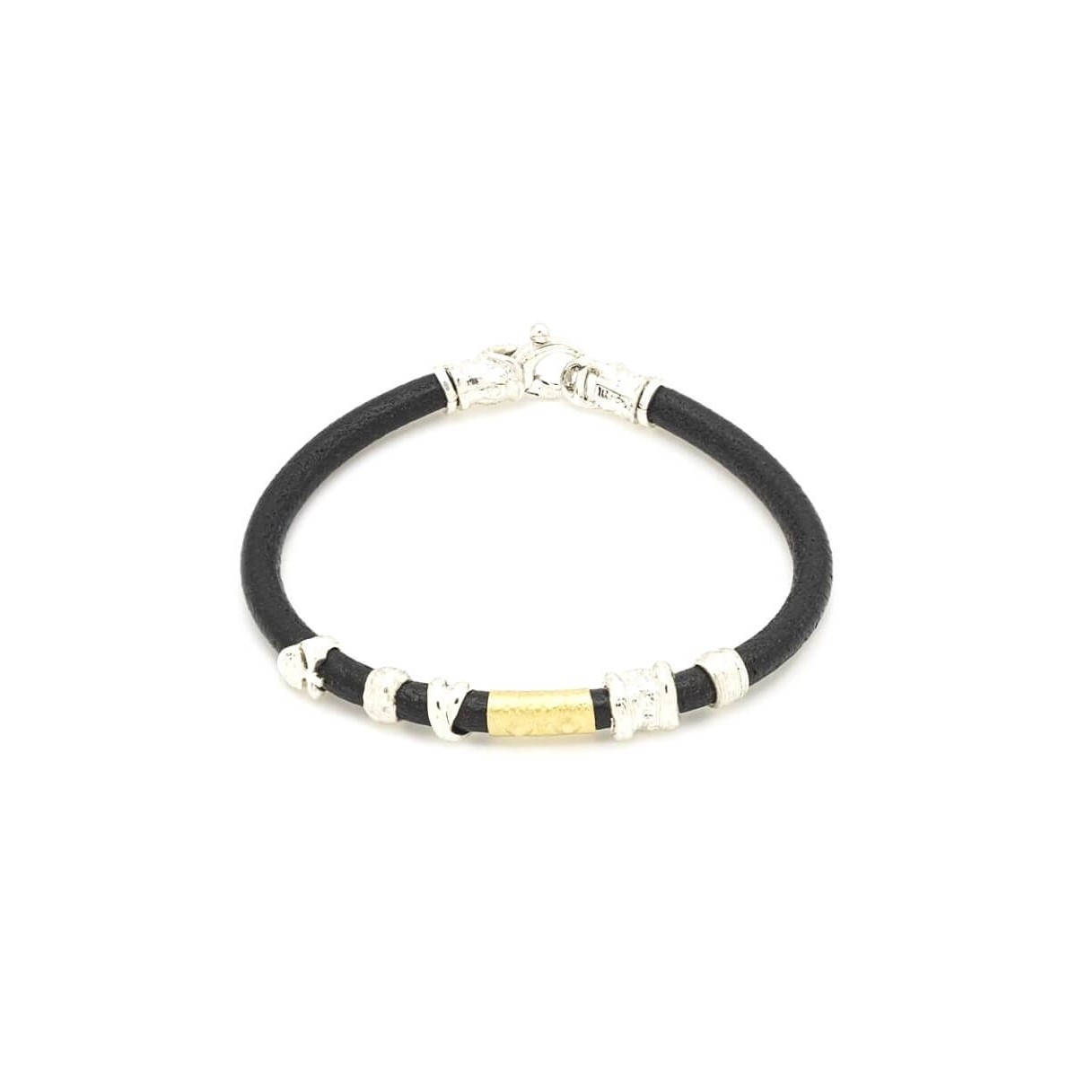 Bracciale in cuoio Misani Grand Tour con oro giallo e argento B2171