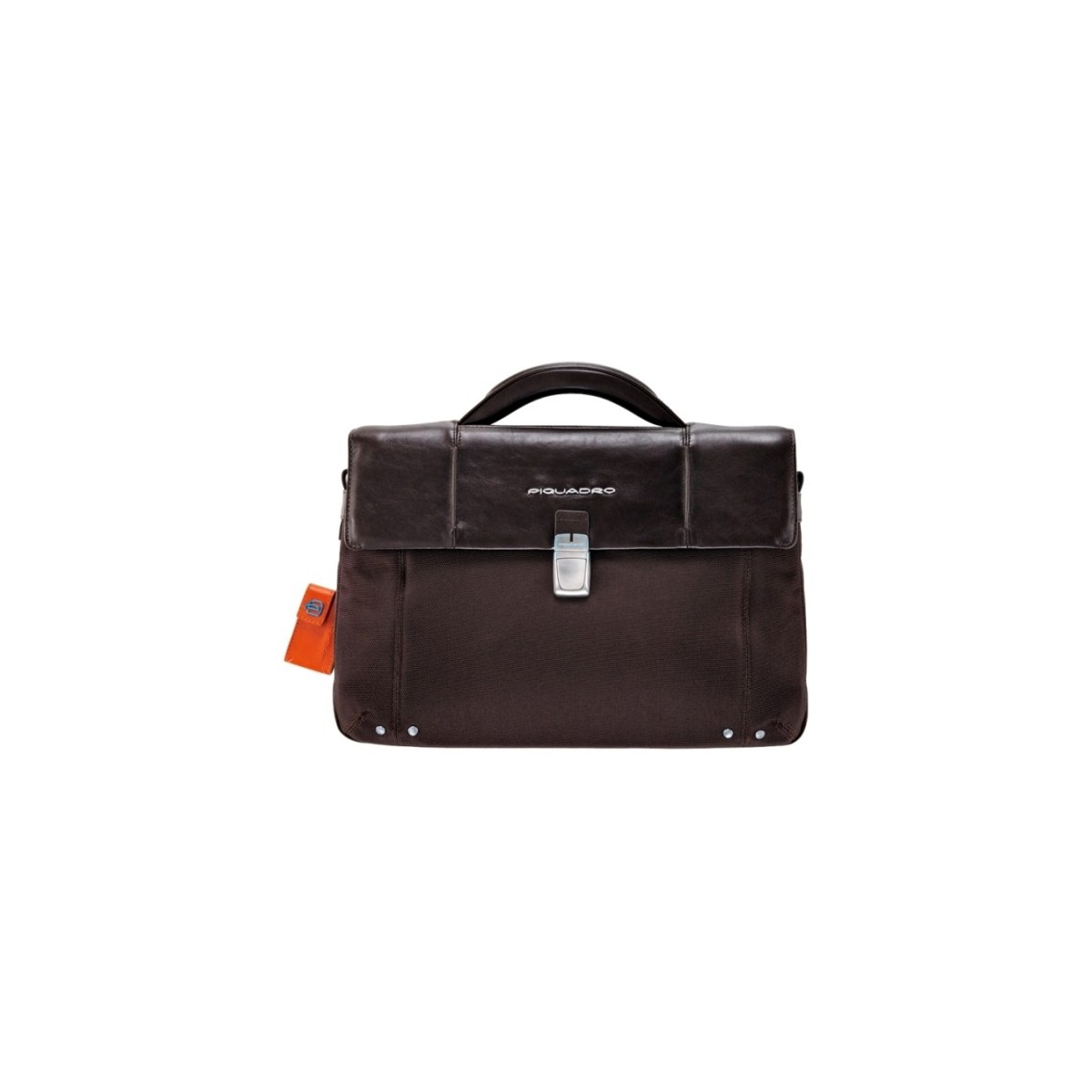 Cartellina Piquadro a un soffietto in nylon e pelle testa di moro