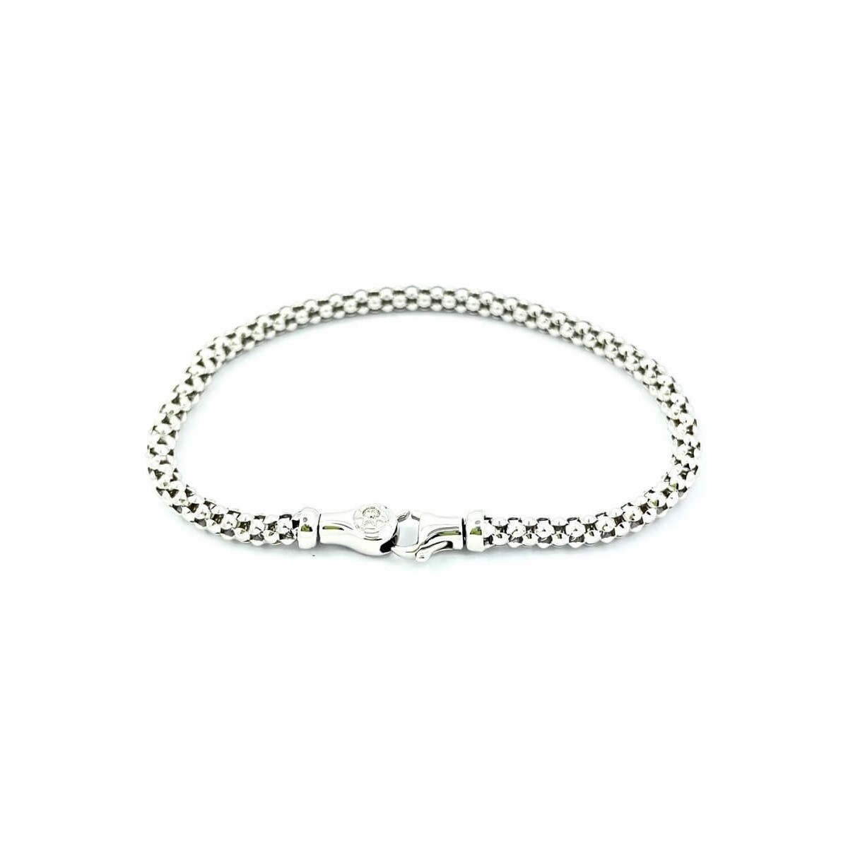 Bracciale uomo donna Chimento misura media realizzato in oro bianco 18 kt (750/1000) con maglia storica di Chimento a chicchi di riso utilizzata spesso in abbinamento con gli altri bracciali nelle colorazioni dell'oro giallo e rosè.