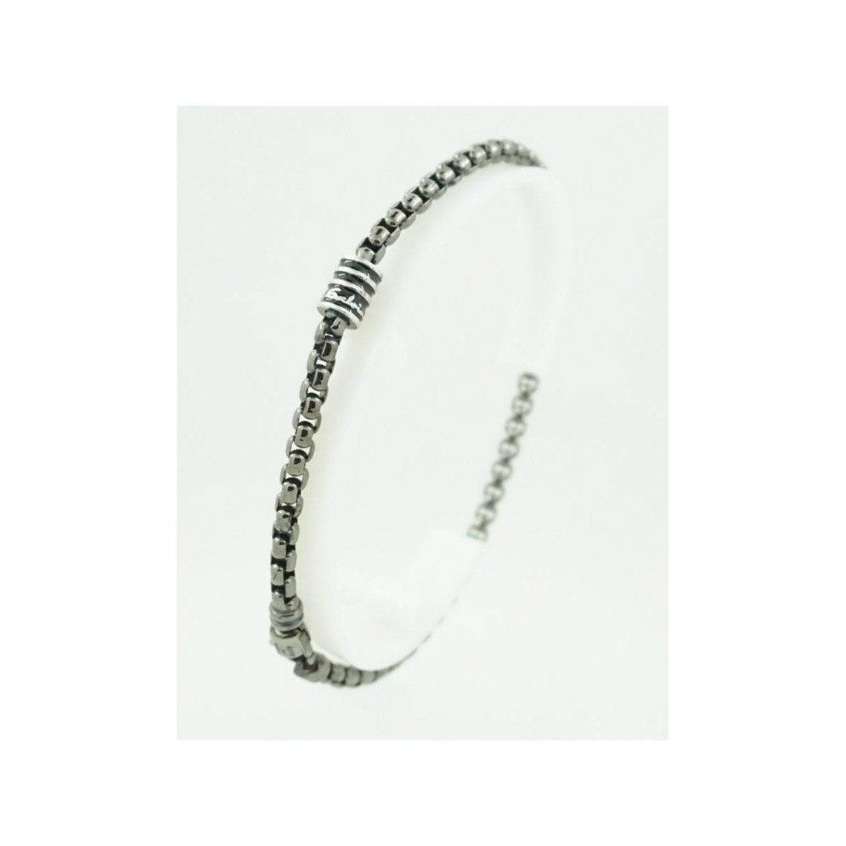 Bracciale uomo in Argento 925 brunito motivo catena morbida forma geometrica quadri tondi con logo su tubolare chiusura moschettone cm 21