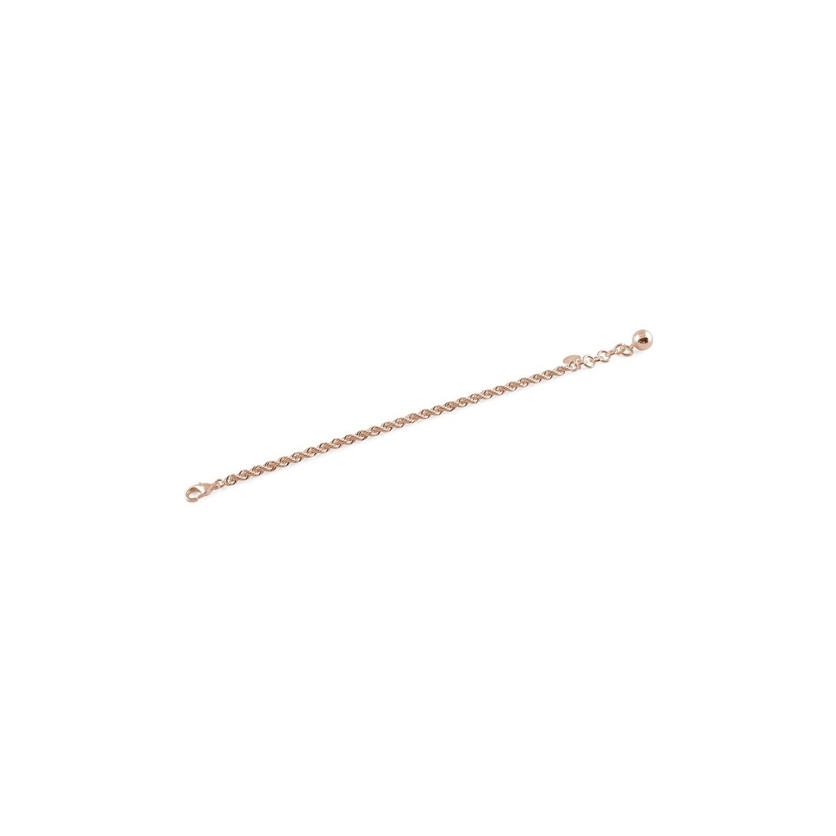 Bracciale Unoaerre, linea classica, realizzato in bronzo placcato oro rosa con catena a corda sottile, modello torchon. Lunghezza regolabile tramite anelli di allungamento, con chiusura a moschettone tondo.