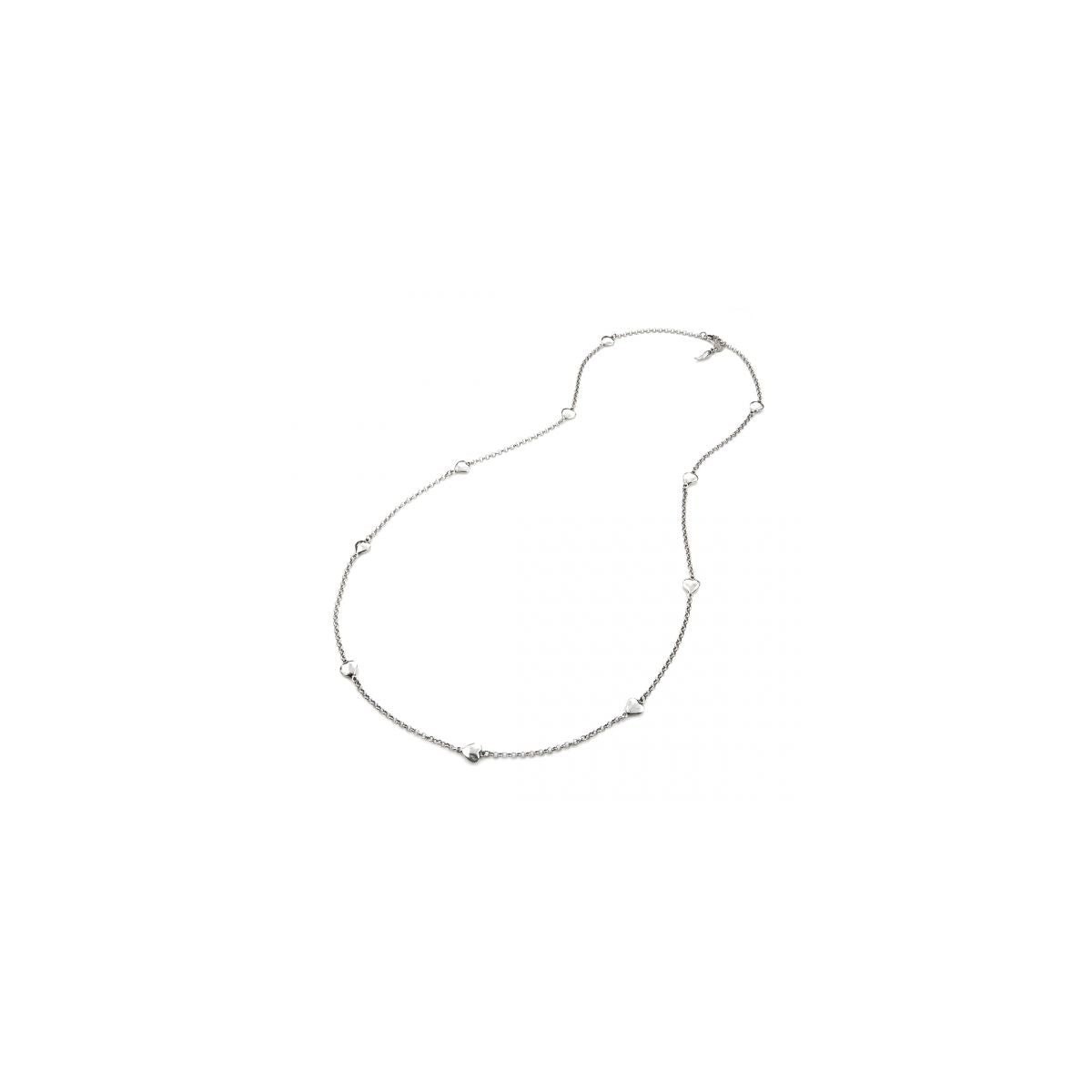 Collana lunga da donna collezione Cuori realizzata in argento 925 con catena alternate a piccoli cuori leggermente martellati. Chiusura a moschettone