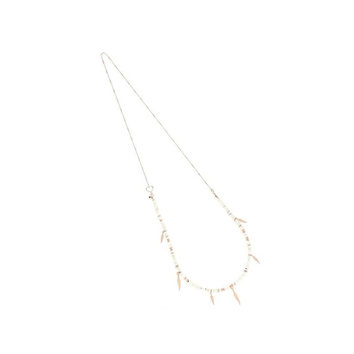 Collana da donna della collezione "America 1492" realizzata in argento 925 placcato oro rosa con pietre di Aulite e Madreperla e sei piume di diverse lunghezze (tra 23 e 30 mm).