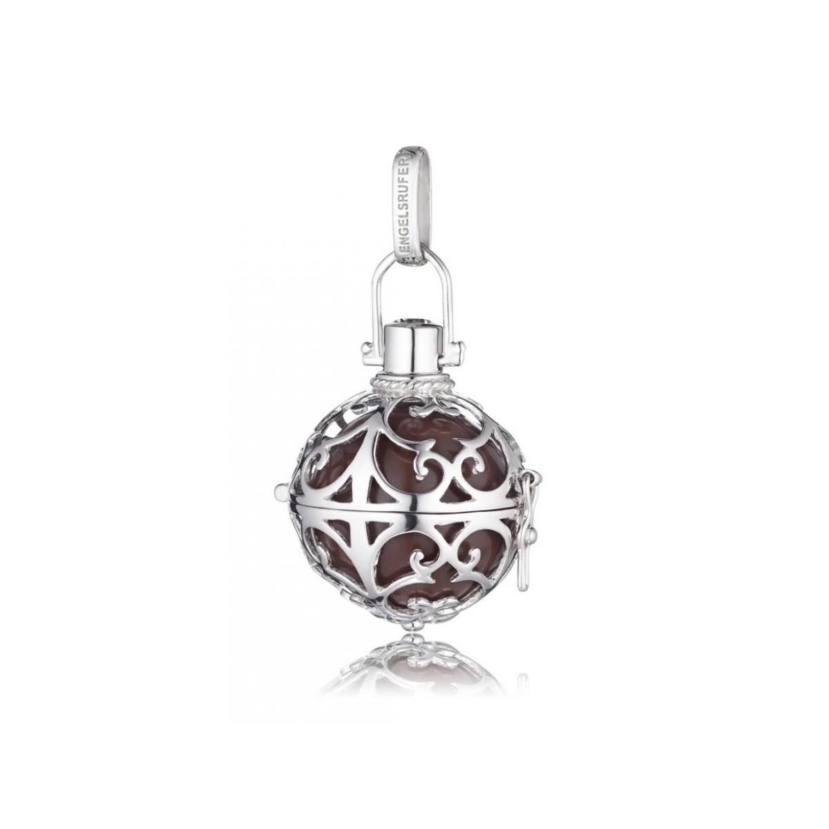 Ciondolo chiama Angeli medium in argento 925 rodiato con cristallo contenente sfera/campanellino smaltata marrone.