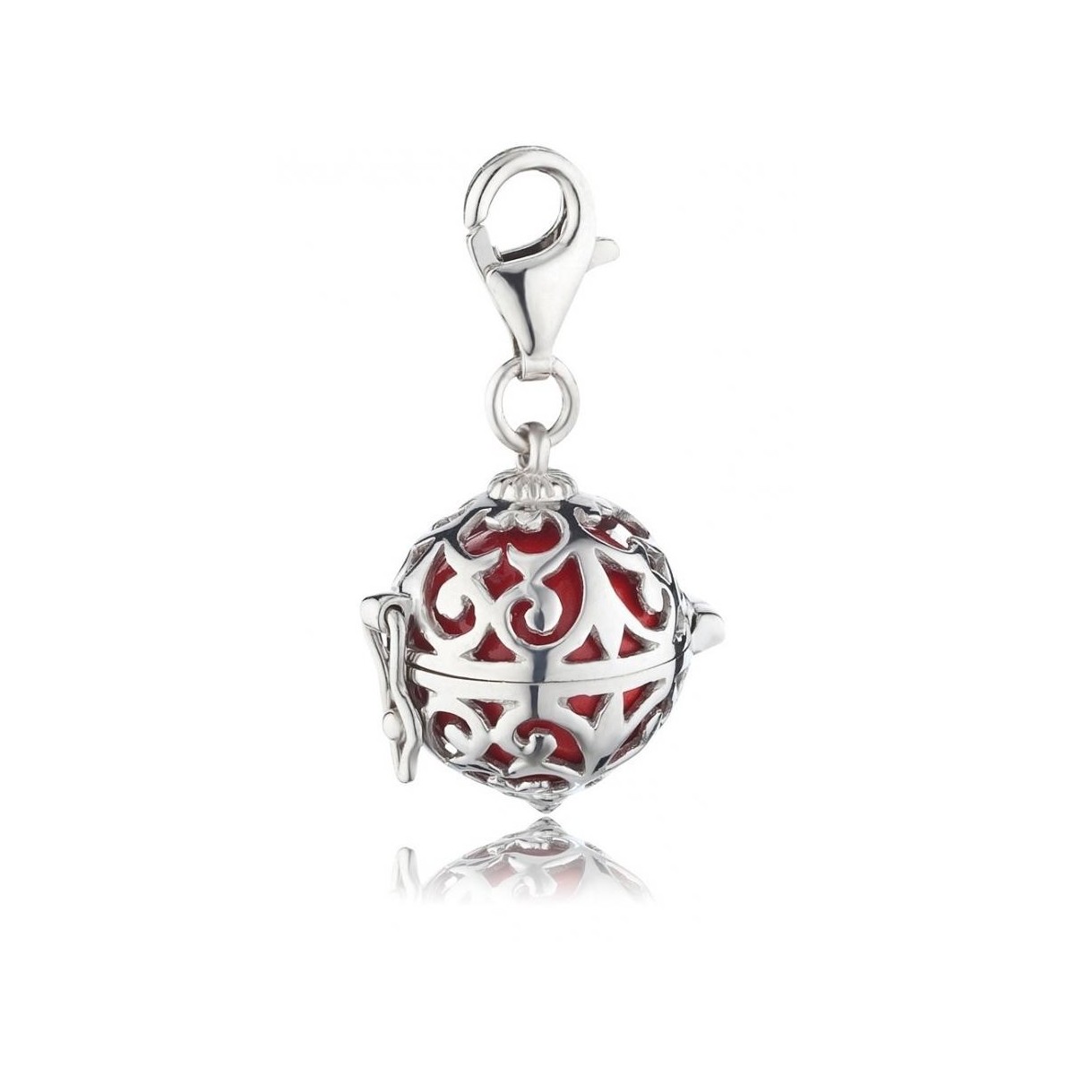 Ciondolo chiama Angeli mini in argento 925 rodiato contenente sfera/campanellino smaltata rossa
