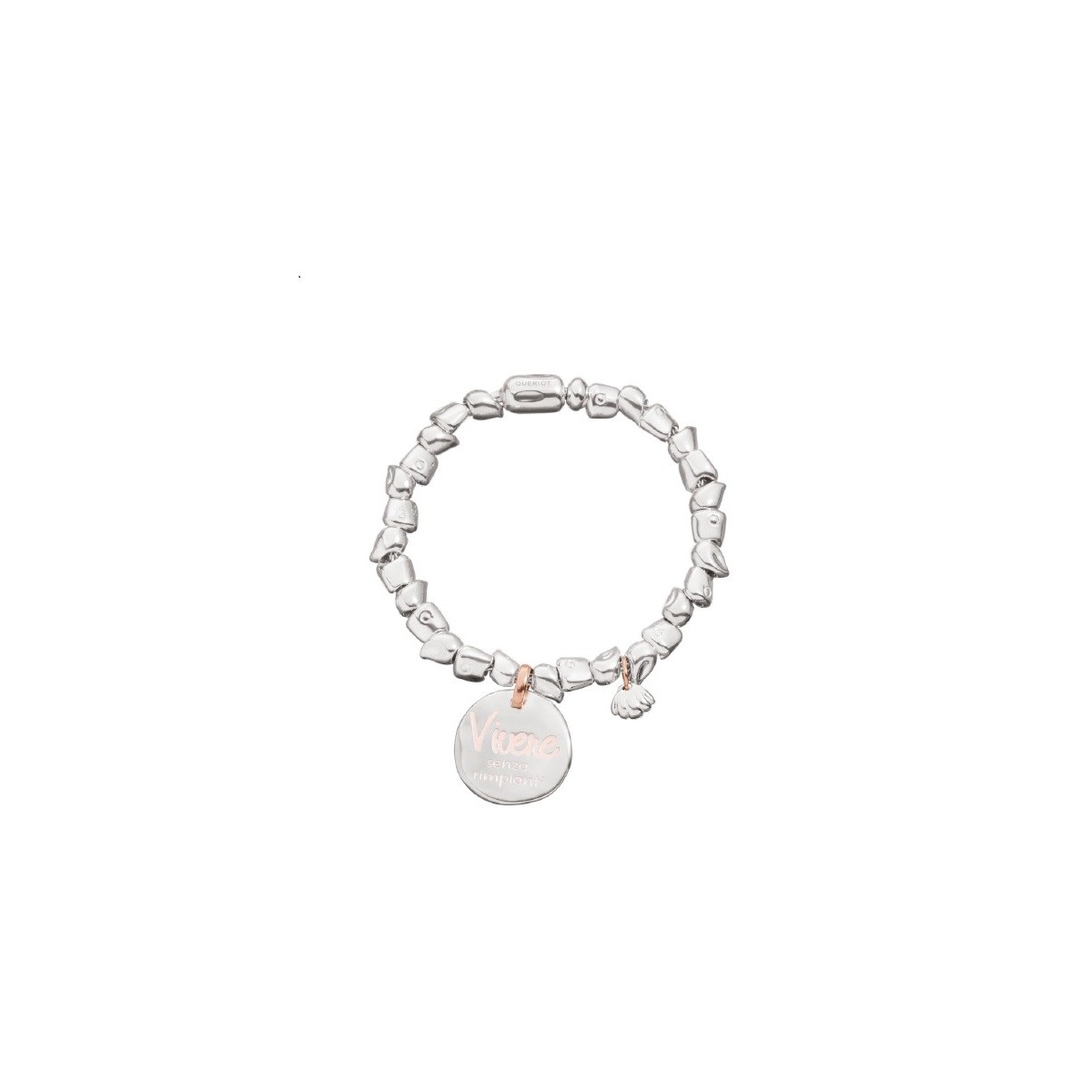Bracciale giulia top in Argento 925 e oro rosa 9k XS con 1 Freno argento e silicone, 14 gocce di rugiada, 12 sassolini del mare, 1 moneta piccola ed 1 microciondolo conchiglia novità estate 2018;