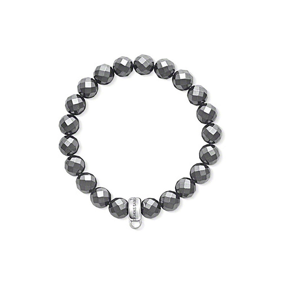 Bracciale con pietre in ematite ricostruita sfaccettata e argento Sterling 925 montato su un filo di nylon elastico e dotato di un porta-Charms griffato, al quale si possono appendere fino a tre Charm.
