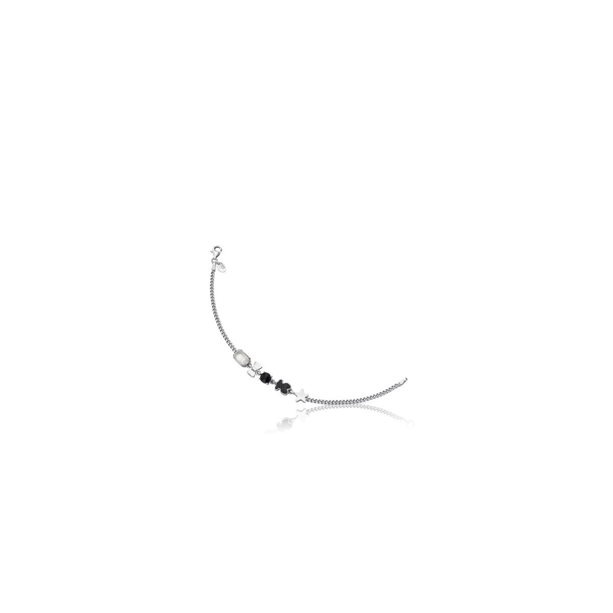 Bracciale in argento 925 con 5 ciondoli di 8 mm l'uno composti da una gemma,un fiocco ,una sfera,un orsetto e una stella. Lunghezza totale del bracciale 18 cm.