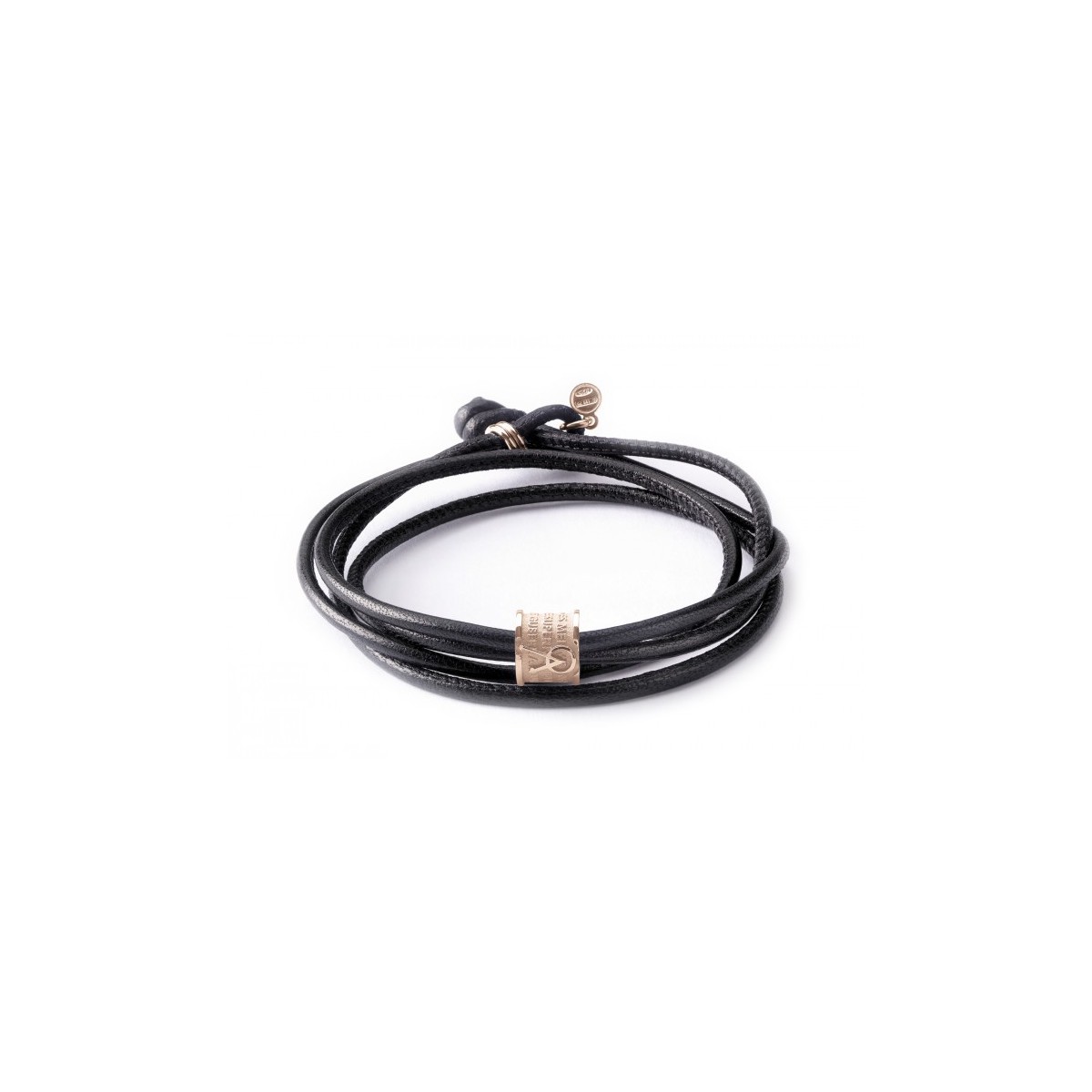 Bracciale INCIPIT FILUM ANGELO in Argento Rosa e pelle nappa nera (Doppio giro)