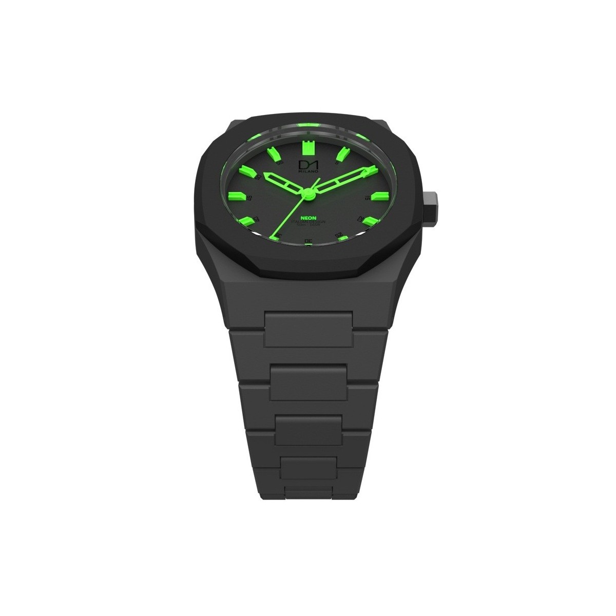 Orologio D1 Milano linea Neon nero indici verdi con ghiera ottagonale
