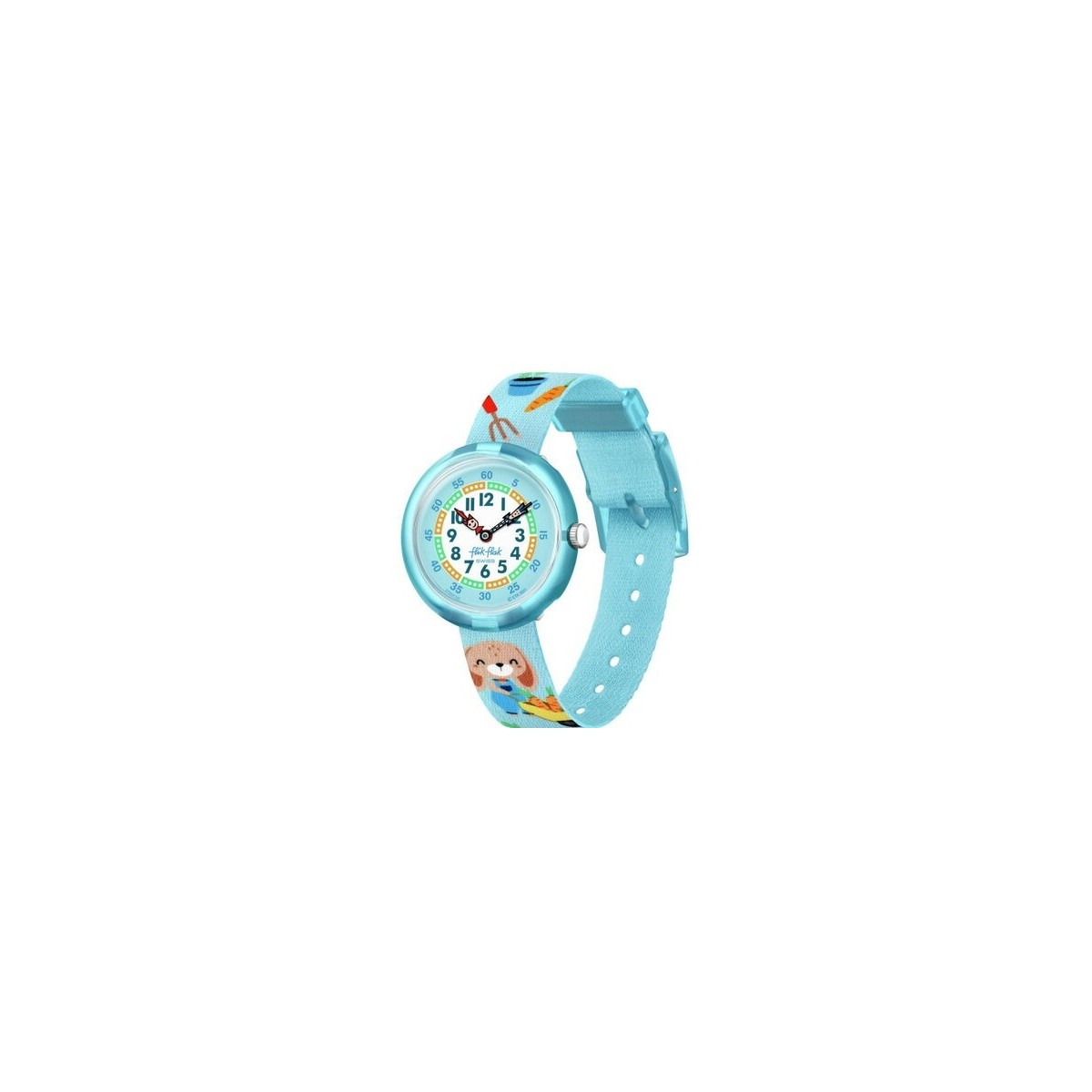 Orologio Flik Flak per bambini Carrot Party con cinturino in tessuto celeste con carote