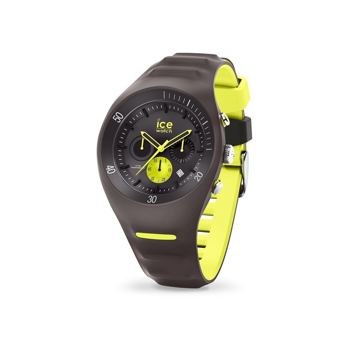 Linea P. Leclercq composto da un cinturino in morbido silicone grigio all'esterno e giallo all'interno con due passanti ferma cinturino, uno grigio e uno giallo che richiama il cronografo interno al quadrante fondo grigio.