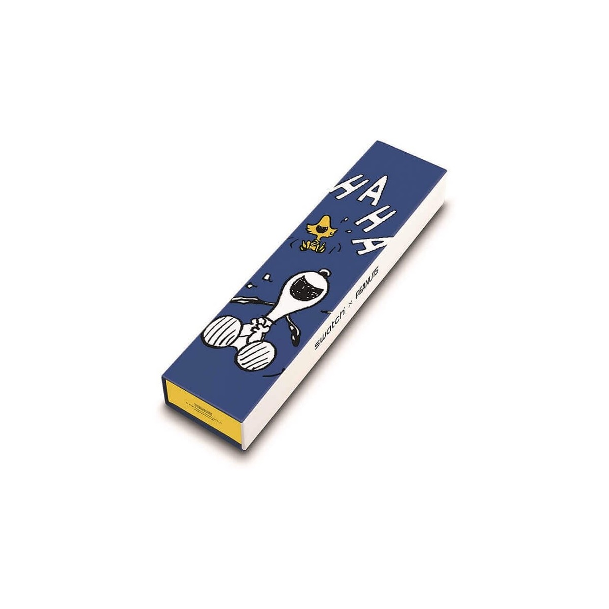 Da una collaborazione Swatch con Peanuts nasce l'orologio Hee Hee Hee con funzione di solo tempo e movimento al quarzo. L'orologio presenta un cinturino in silicone di colore blu con stampa dei personaggi cartoon Woodstock e Snoopy, la cui faccia ritroviamo anche sul quadrante blu arricchito da lancette gialle con stampa Woodstock e ciotola per cani.