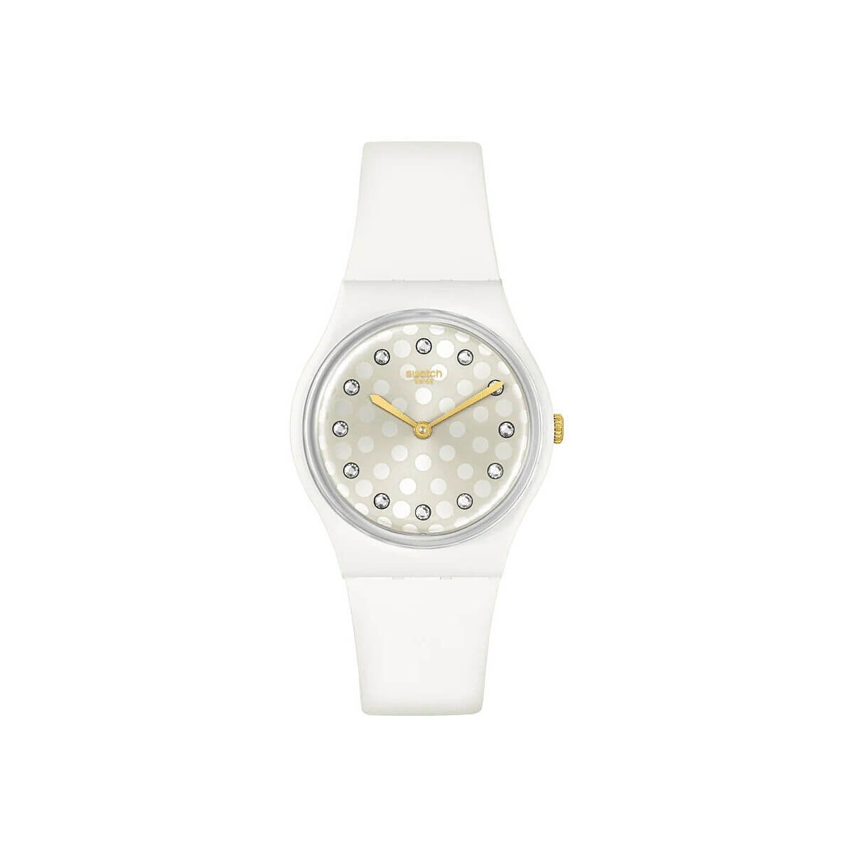 Swatch Gent Sparkle Shine bianco e zirconi sul quadrante