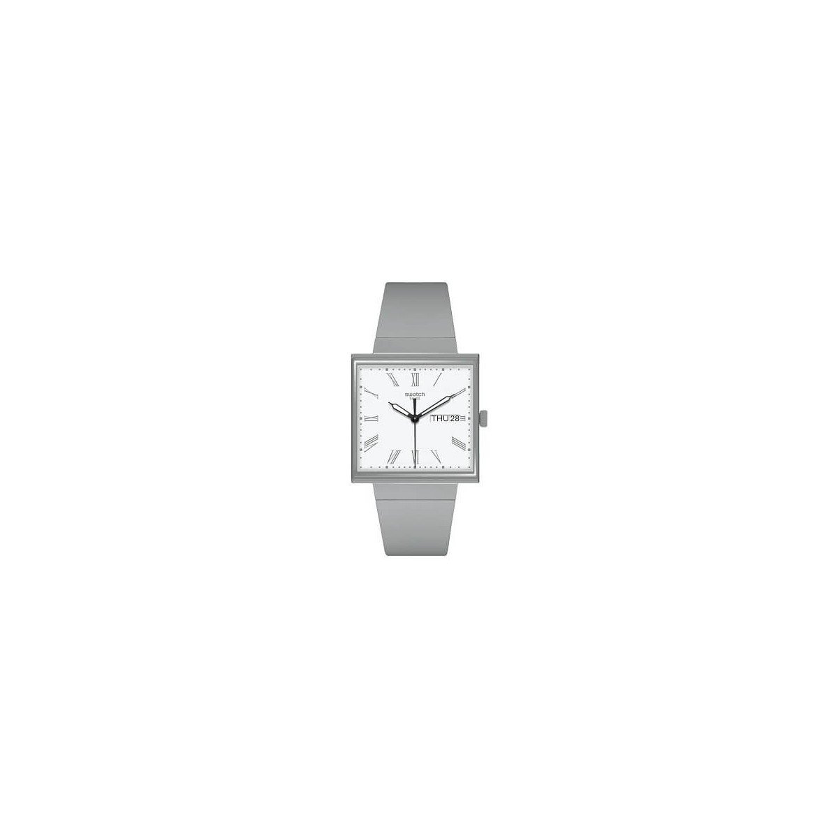 L'orologio What if gray con cassa quadrato bioceramic è caratterizzato da un vetro biosurced edge-to-edge che permette una visione laterale delle lancette dell'orologio. Il quadrante quadrato è dotato di lancette che si illuminano al buio e a ore 3 di una finestra con la data del giorno. Il quadrante è completato da un cinturino integrato in materiale biosurced. Un copribatteria stampato sul retro raffigura uno dei quadranti che hanno ispirato questo orologio quadrato bianco.