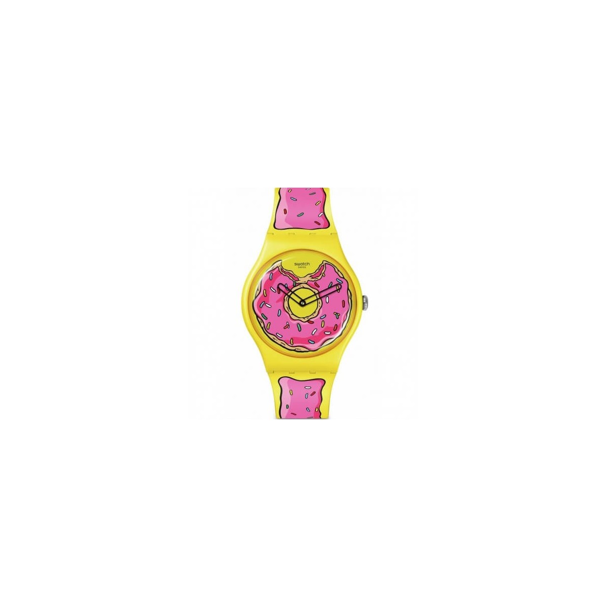 Orologio Swatch New Gent con funzione di solo tempo e movimento al quarzo. Ispirato alla serie animata statunitense famosa in tutto il mondo, Swatch X The Simpsons presenta l'orologio dedicato al dolce più goloso di tutta la serie, l'iconica ciambella di Homer Simpsons.