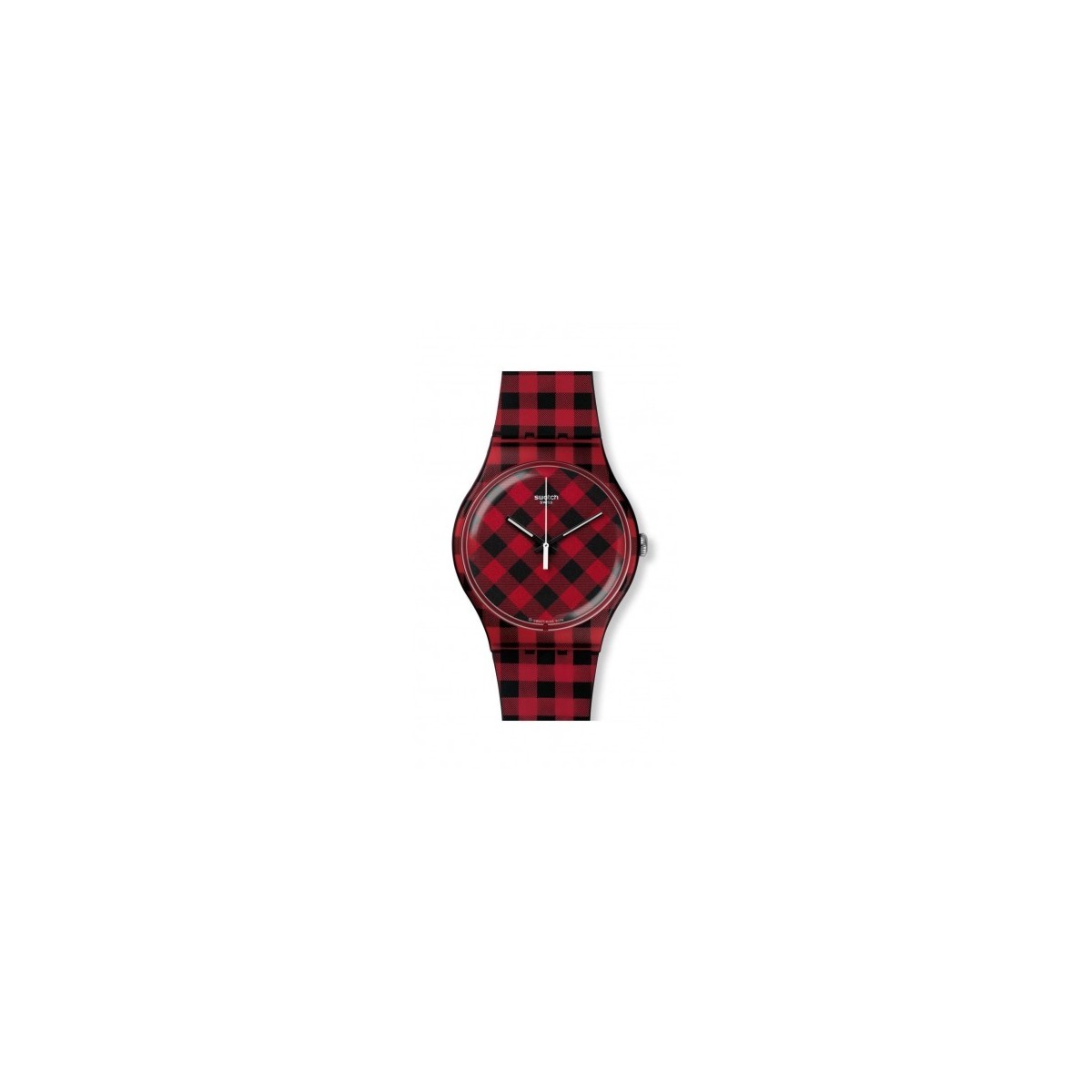 Orologio in silicone con quadrante ghiera e cinturino quadrettati rosso e nero, cassa nera