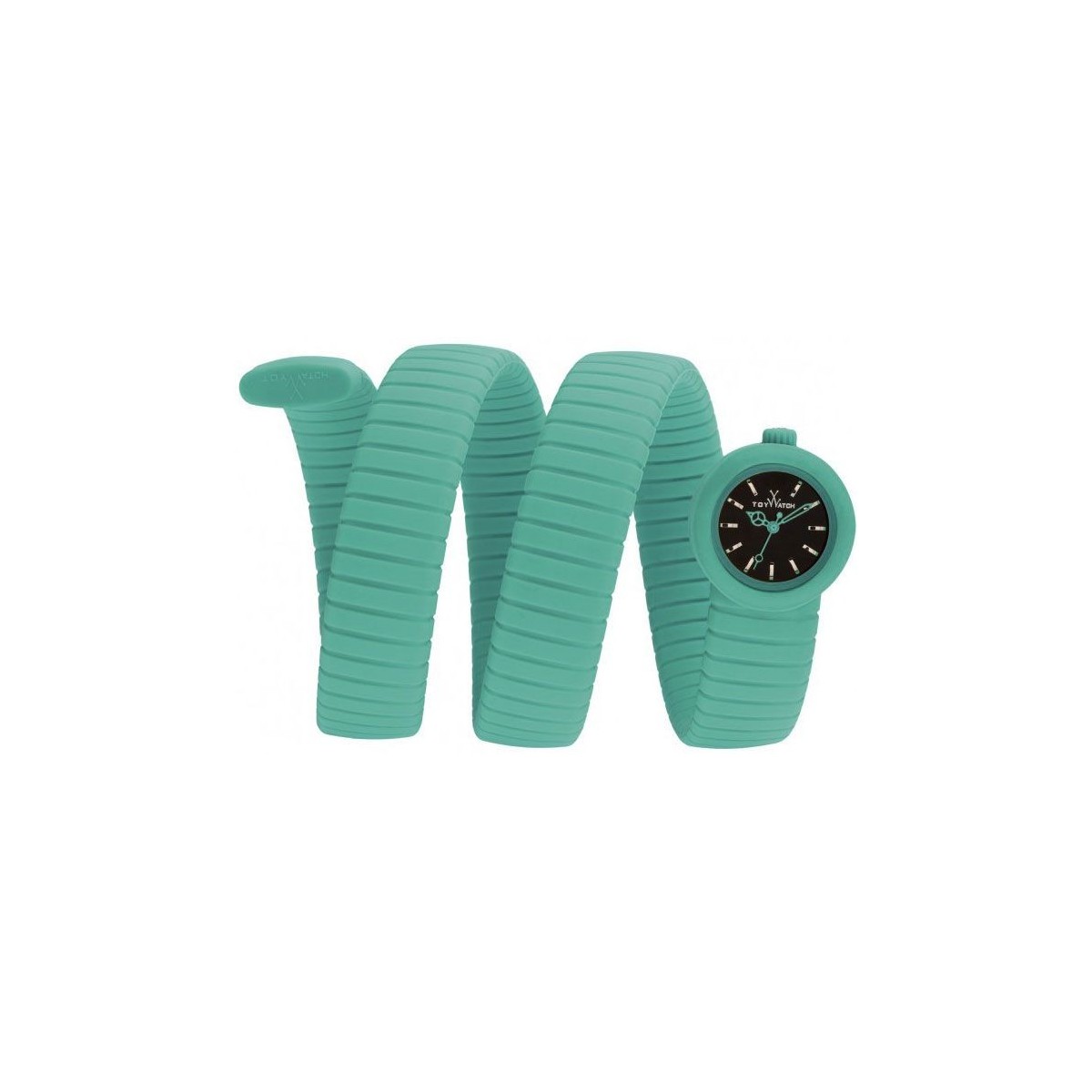 Orologio ToyWatch ToyViper Aqua Green con bracciale in silicone verde acqua vestibilità bangle e quadrante nero; ghiera Smooth texture profile e Water Resistant 3ATM; movimento solo tempo quarzo.