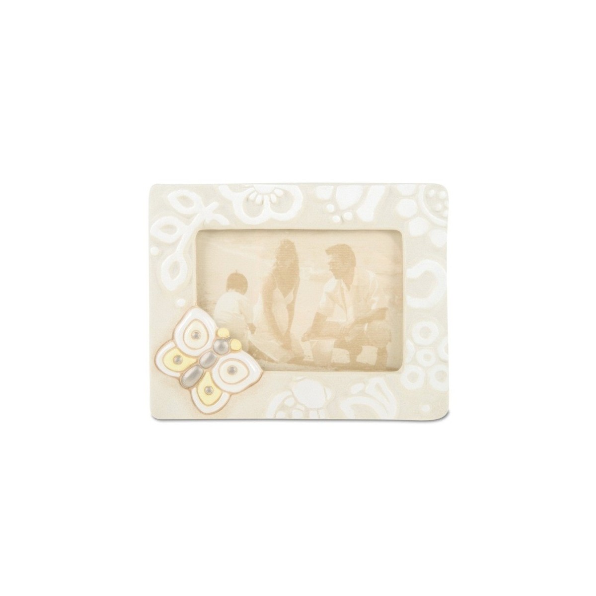 Portafoto Thun medio Prestige.Portafoto in ceramica 19x15 cm di colore grigio con disegni bianchi in rilievo
