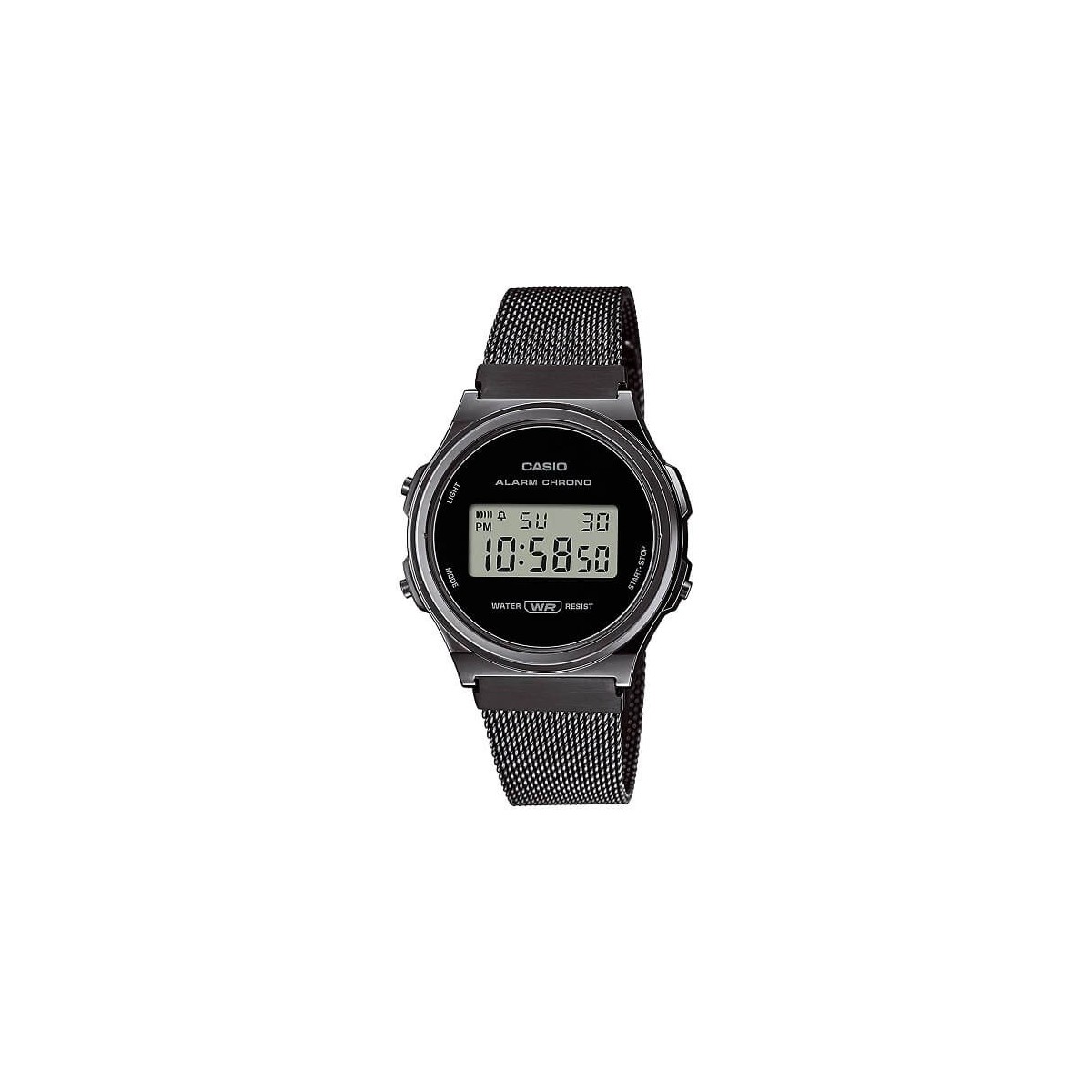 Orologio Casio Vintage digitale tondo con maglia milanese nera