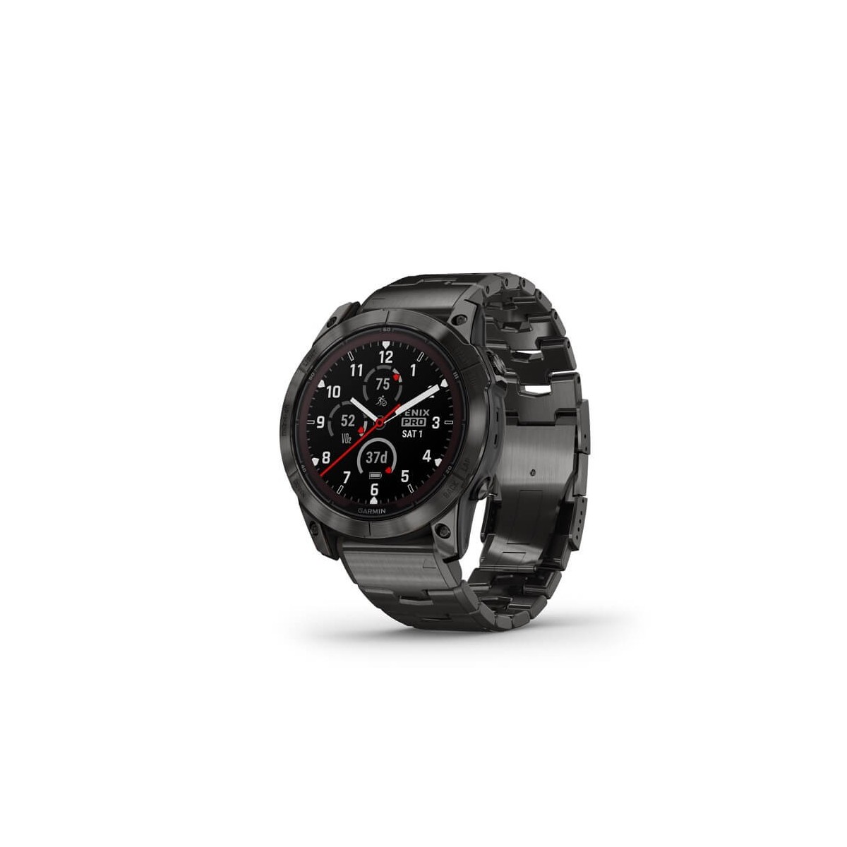 Orologio Smartwatch Multifunzione linea fenix® 7X Pro con lente a ricarica solare. Cinturino e cassa in titanio nero.