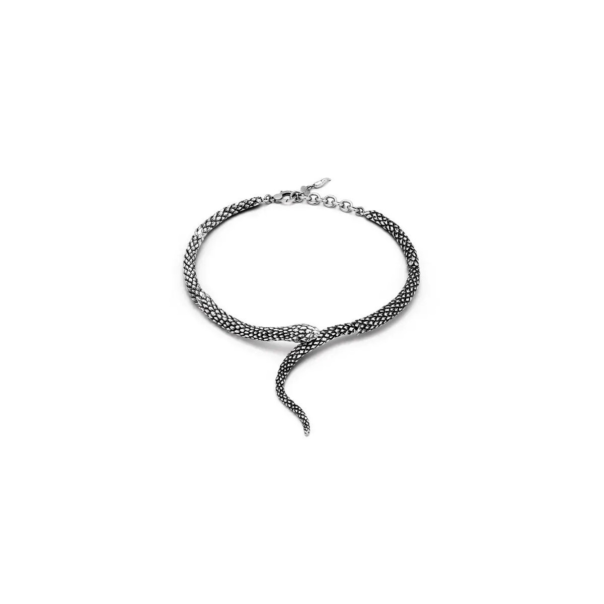 Collana collezione 'Animalier' realizzata in argento brunito 925 raffigurante un serpente che avvolge il collo, grazie agli invisibili giunti snodati, con chiusura a moschettone con maglie di regolazione.