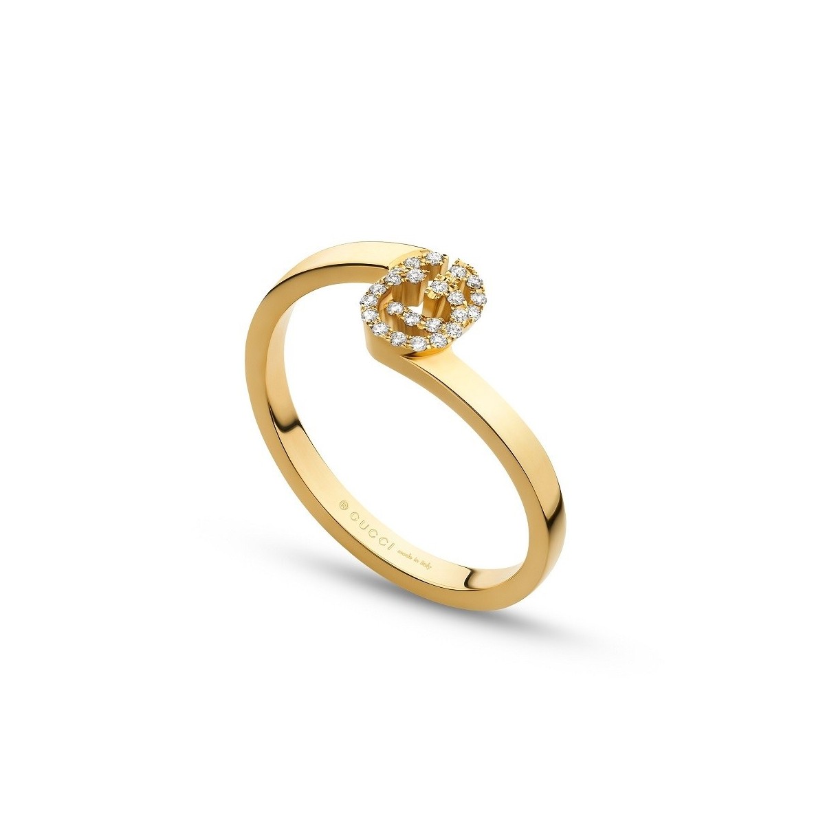 Ispirata da un dettaglio degli anni '70, la Doppia G definisce questo sottile anello in oro giallo 18 carati, ed è impreziosito da diamanti a taglio brillante tondi.