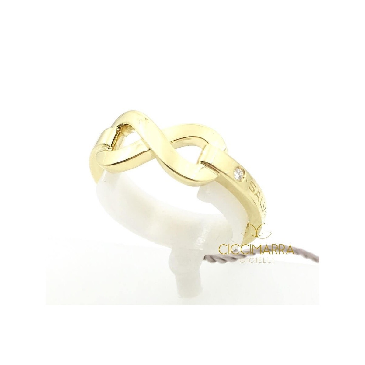 Anello realizzato in oro giallo 18 kt (750/1000) a forma di Infinito o visto in altra veste a forma di otto rovesciato, simbolo di continuità e fortuna.