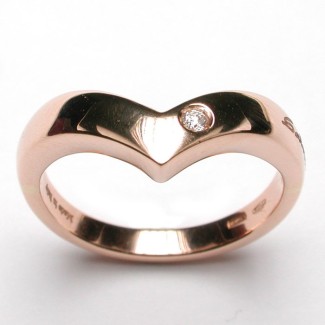 Anello in oro rosa 750/1000 con parte anteriore a forma di ala con un diamante naturale taglio brillante.